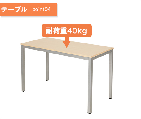 PC作業などのデスクワークから軽作業まで、多くの用途に対応する天板耐荷重です。