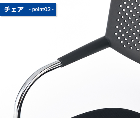 カンチレバーフレームの流れるような曲線を活かした肘掛けが、立ち居の動作をスムーズにサポート。角がなく、肌へのあたりが優しいラインです。