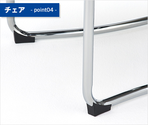 脚の下部には滑り止め加工を施し、チェアの転倒を防止。デザインと安定性を両立した設計です。