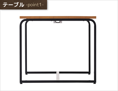 天板角の脚部がアール状になっており、金属や角の硬いイメージを柔らかく優しい印象に。シンプルなデザインにアクセントを加えています。