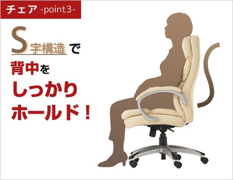 | 備考 | ※背座一体ロッキング機能付き ※S字構造ハイバック ※肘付き ※ガス圧式上下昇降(座面高さ調節可能) ※座面コイルスプリング内蔵 |