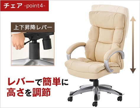 レバーで簡単に高さ調整可能。デスクや体形に合わせて調整できます。