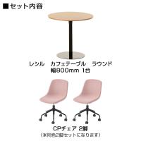 コンパクトで手軽に使いやすいカフェテーブル「レシル」と、丸みのあるフォルムが身体に寄り添うようにフィットする「CPチェア(2脚)」をセットでお届けします。CPチェアは、デスク下にもすっきり収まる肘なしタイプ。ファブリックで背座面を覆った張りぐるみ仕様で、温かみのある木製天板を使用した「レシル」との相性も良好です。軽い休憩やちょっとした打ち合わせなど、幅広いシーンで活用できます。