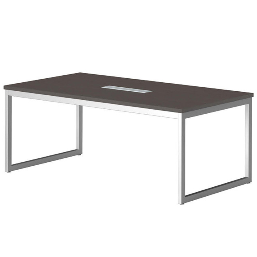 デザイン性の高いロの字脚が特徴的。天板はキズに強いメラミン化粧板で、指紋レスもご用意。脚部と天板のカラーは自由に組み合わせ可能。便利なワイヤリングボックス付き。