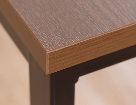 天板側面に接着剤を塗布してABS樹脂を貼付したABS樹脂エッジ巻は、硬質タイプの樹脂エッジで耐久性に優れ、素材面との一体感が得られます。