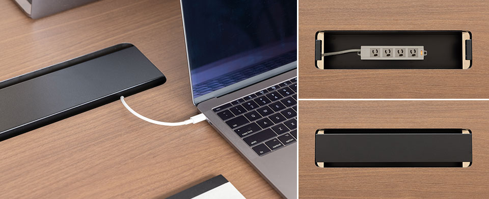 天板面のカバーを外し、電源タップやケーブル等を収納できます。