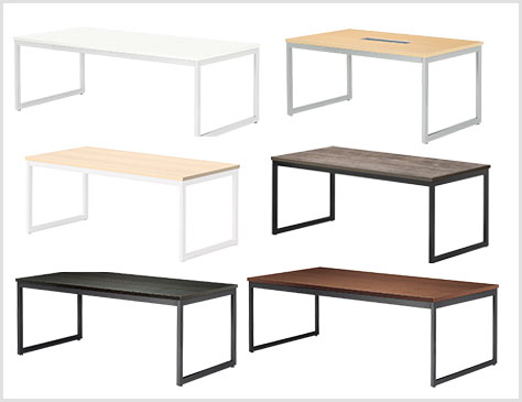 デザイン性の高いロの字脚が特徴的。天板はキズに強いメラミン化粧板で、指紋レスもご用意。脚部と天板のカラーは自由に組み合わせ可能。シンプルなスタンダードタイプ。