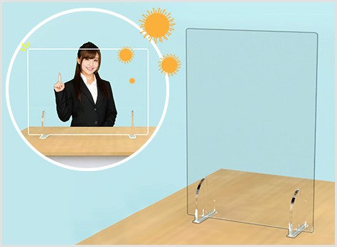 | ご注意 | ※この商品は対面時に飛沫の拡散を軽減するものであり、ウイルスにより感染防止を保障するものではありません。 ※透明板は、アルコールや次亜塩素酸で清掃していただけます。台座につきましては、薄めた中性洗剤を含ませた布で拭き取ったあと、水拭きし、最後に乾拭きしてください。 (アルコールや次亜塩素酸などの薬品に長時間浸すと変質する可能性があります。) |