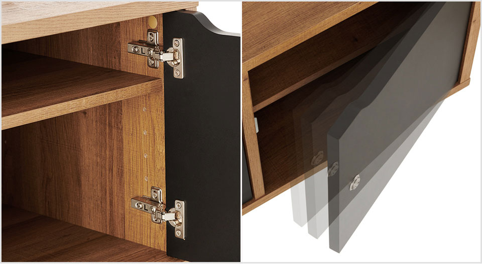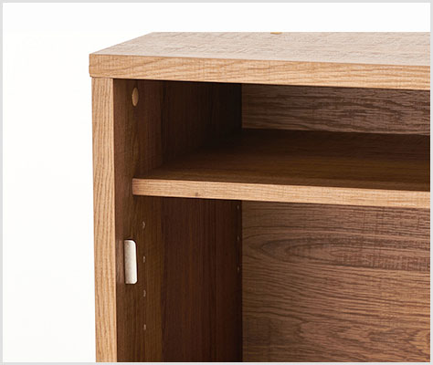 扉が静かにゆっくりと閉まるようアシストする金具、ソフトクローズドアヒンジを搭載。軽い力で動作し、衝撃音や扉のバウンドを防止します。枠を傷付けず、指をはさむ危険性も抑える、本体にも使用者にも配慮された機構です。