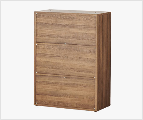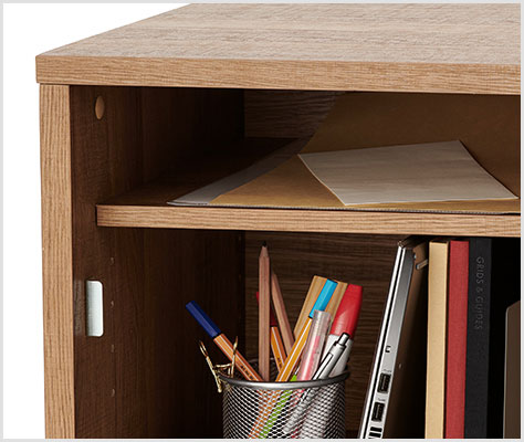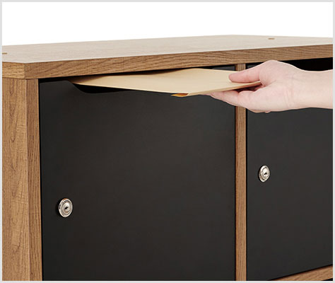 棚板の位置や有無に関係なく、A4サイズの書類を横置きで収納可能。扉を開けた時に、投函された書類も落下しにくい広さがあり、下段には私物を収納できます。