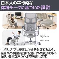 | 機能・特徴 | ・ガス圧式ランバーサポート ・6Dアーム(高さ、前後、左右、内外、角度調節可能) ・背もたれ独立昇降 ・座面スライド ・ガス圧式上下昇降 |