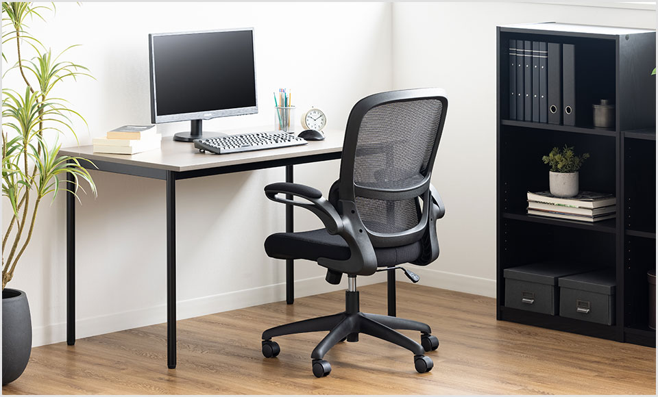 跳ね上げ式アームでデスクに収納。省スペースと多様な使い方を叶えるメッシュチェア「LF-002」