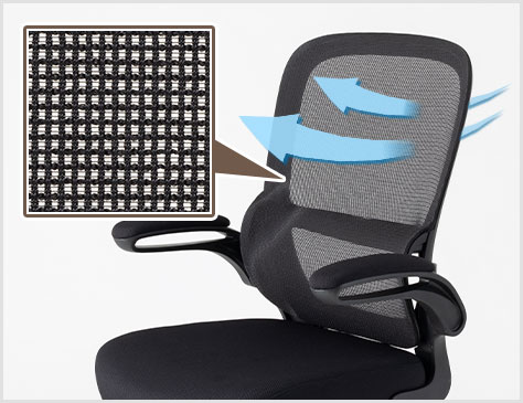 通気性に優れたメッシュ生地を採用。熱がこもりにくく、季節を問わず快適な座り心地を保ちます。ハリのある弾力が体圧を分散します。