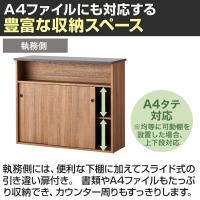 執務側には、便利な下棚に加えて、スライド式の引き違い扉付き。 書類やA4ファイルもたっぷり収納でき、カウンター周りもすっきりします。