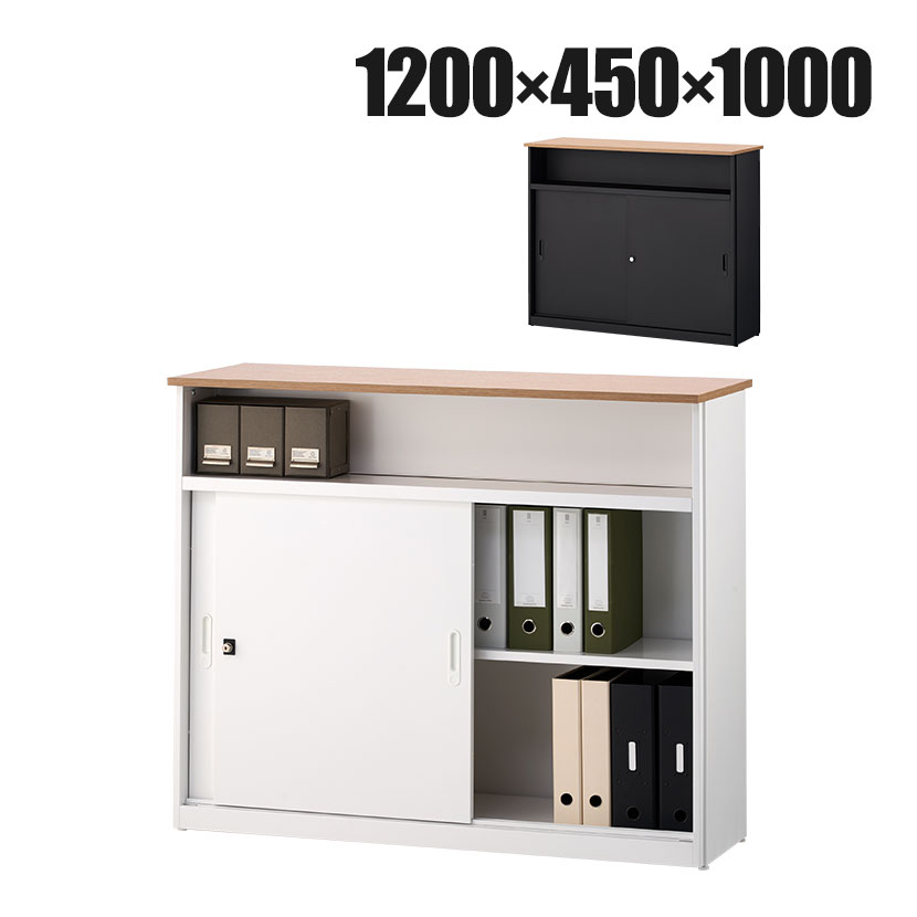 引き違い扉付きで利便性UP! 頑丈なスチール製ハイカウンター/幅1200mm