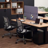 様々なデスクに対応し、2通り活用できる実用性の高いデスクトップパネル。上下を逆にして、机上型と幕板型が選べます。机上型は対面の視線を遮断して、落ち着きと集中力が高まるデスクスペースに。幕板型は足元を隠し、スッキリと見せることができます。ハニカムコアを採用したパネルは、軽量&高強度で取り付けもラクラク。クランプ式金具なので多くのオフィスデスク・昇降デスクに対応し、優しいグレーのファブリック地は多様なオフィス空間に馴染みます。