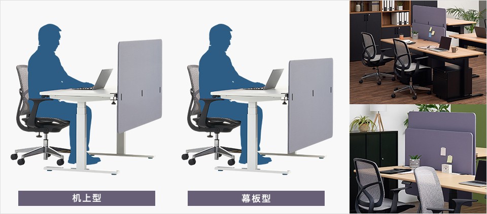 ワークスタイルに合わせて使い分けられる「机上型」と「幕板型」