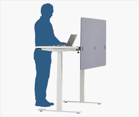 デスクを挟んで固定できるクランプ式を採用しているので、通常のオフィスデスクにはもちろん、昇降デスクにもご使用いただけます。