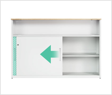 書類や備品をすっきり収納。引き違い扉付きスチール製ハイカウンター