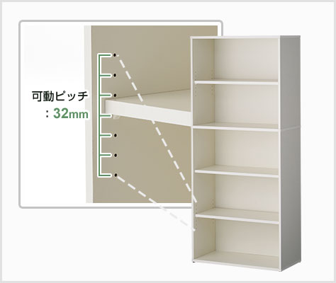 棚板の位置は、7段階に高さを調節可能。用途や収納物に合わせて、自由にスペースを活用できます。