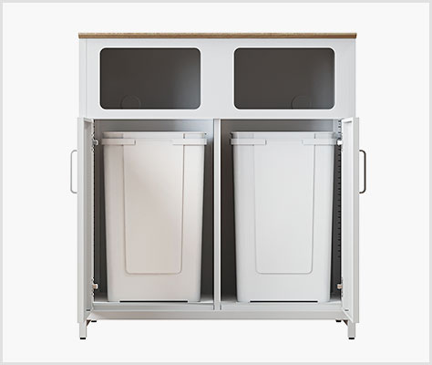 ゴミの分別に便利な2個収納タイプで、容量たっぷりの70Lサイズを目安に設置可能。本商品は70Lのゴミ箱2個をセットでお届けします。