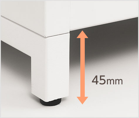 脚下には45mmの空間を確保し、清掃も楽々。底面のアジャスターで床に対して水平に調節でき、安定した設置が可能です。