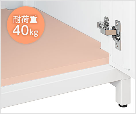 底板は耐荷重40kgの頑丈設計。重量のあるものでも、まとめてしっかりと収納することができます。