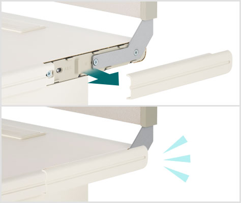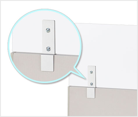 デスクとパネルは、接合金具とネジでしっかりと固定が可能。接合部のサイドエッジが着脱式になっているので、金具をスッキリとカバーして美観性を保ちます。