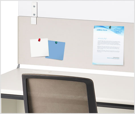 デスクトップパネルはピンナップに対応し、メモや資料を掲示できます。用事を忘れないように貼り付けたり、同僚とのコミュニケーションにも便利。紛失や机上の散乱も防止できます。