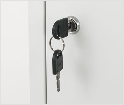カギを回して施錠・解錠するシリンダー錠タイプ。セキュリティ性を高め、収納物をしっかりと守ります。