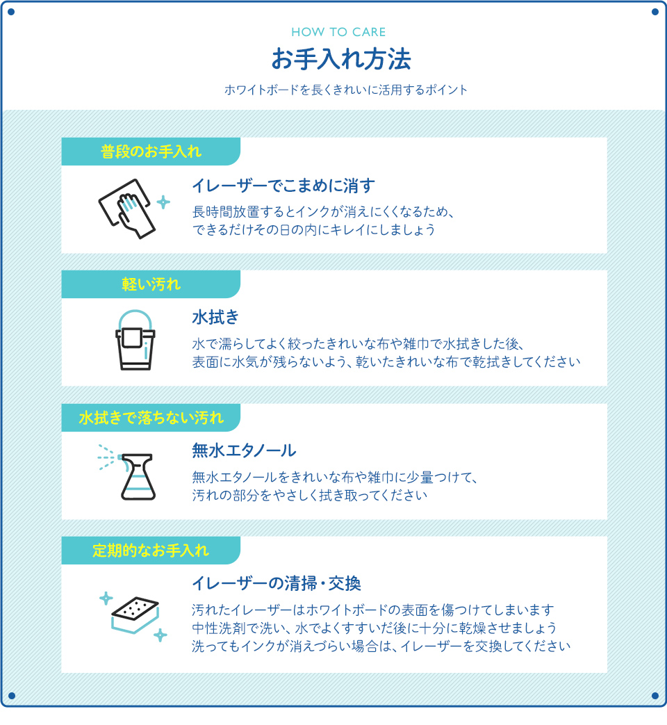 資料を貼って打ち合わせする際にも便利なマグネット対応タイプ。業務連絡やイベントのお知らせなどを貼り付け、社内掲示板としても活用できます。