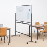 くるっとホワイトボードを回転し、手軽にふたつの面を切り替えることができます。表裏どちらの面にも書ける両面仕様です。