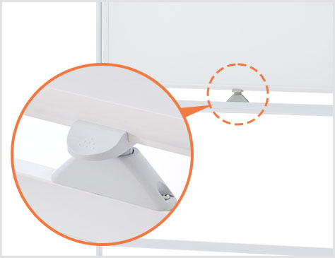 ホワイトボードのセンターには、便利なプッシュ式ストッパーが。操作は簡単。ワンタッチで板面を回転し、固定することができます。