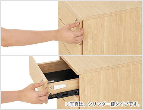 一括で3段すべてを施錠できるオールロック錠を採用。ダイヤル錠なのでカギは不要。1万通りの組み合わせからお好みの暗証番号を設定できます。