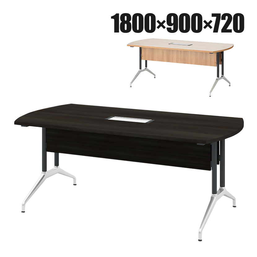 オープンオフィスの一画にマネジメントエリアを構築するOXシリーズ。ラウンドしたサイドが柔らかな印象で、応接シーンにも馴染む風格あるデザインの4〜6人用ミーティングテーブルです。中央にはフタ付きの配線ボックスを搭載し、天板上をスッキリと見せます。特徴的なラインが目を引く脚は、シックなブラックと美しいアルミが、クールかつスマートなアクセントに。柔和な木目調の風合いが、メンバーとコミュニケーションをとりやすい役員空間へ導きます。