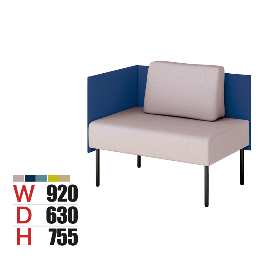プラス ワークフラン パネルソファ ロータイプ 1.5人掛 背付 サイドパネル付 布張り プレーンクロス 背座ライトグレー 幅920×奥行630×高さ755mm LS-WFS0907RPS