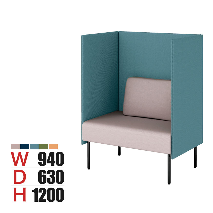 プラス ワークフラン パネルソファ ハイタイプ 1.5人掛け 背付 両サイドパネル 布張り 綾織クロス 背座ライトグレー 幅940×奥行630×高さ1200mm LS-WFS0912PPS