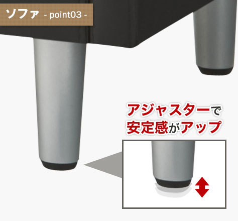 | アジャスターについて | アジャスター付き ※高さの調整はできません。 ※ガタつきがある場合のみ、脚の下部分を回して調整します。 (5mmまで調整できます。) |