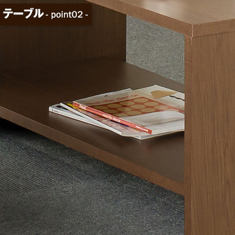 お客様の待ち時間に読む雑誌やパンフレットを置くのに便利な収納棚が付いています。