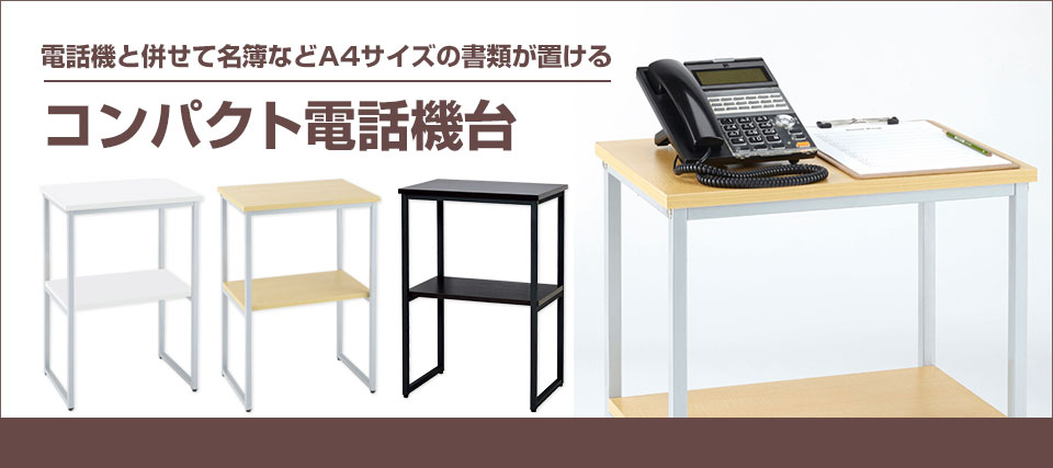 電話機と併せて名簿などA4サイズの書類が置けます。エントランスで消毒液やタイムカードなど置くラックとしても便利です.