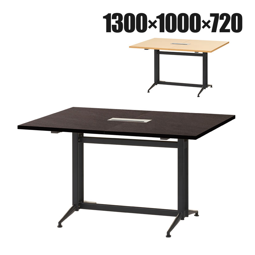 使用人数やスペースに合わせて幅を変更できる会議用テーブル(フリーアドレスデスク)です。こちらは幅1300mmの基本タイプ。増連テーブル(別売)を追加するごとに幅800mmずつ延長でき、上限なく増連可能です。脚はT字脚を採用。角の部分が空いていることで、出入りがスムーズにできます。また、天板中央には大型の配線ボックスを装備。コード類をスッキリと収納することができます。カラーはナチュラルとダークブラウンの2種類からお選びいただけます。