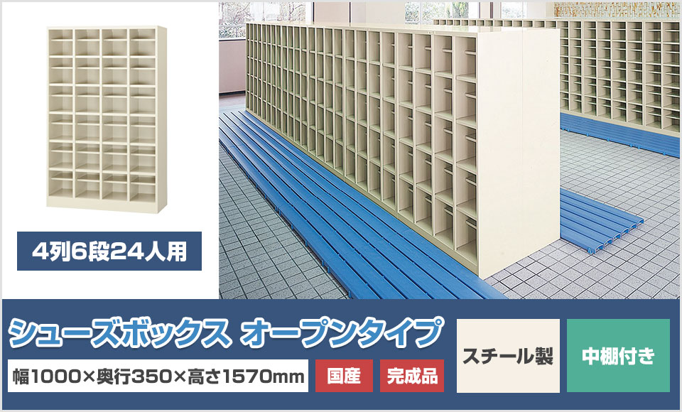 オープンタイプのシューズボックスは出し入れがしやすく、入り口をスッキリ清潔に保つことができます。省スペースに多くの靴を収納できるので、人の出入りが多いオフィス、病院、学校などの場所で活躍します。幅広い用途に合わせたサイズ展開があり、シンプルなニューグレーのカラーはさまざまな空間に馴染みます。