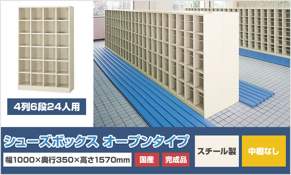 学校や病院など人の出入りが多い場所で活躍するシューズボックス。棚がなく少し高さがある靴も収納できます。
