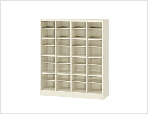 オープンタイプのシューズボックスは出し入れがしやすく、入り口をスッキリ清潔に保つことができます。省スペースに多くの靴を収納できるので、人の出入りが多いオフィス、病院、学校などの場所で活躍します。幅広い用途に合わせたサイズ展開があり、シンプルなニューグレーのカラーはさまざまな空間に馴染みます。