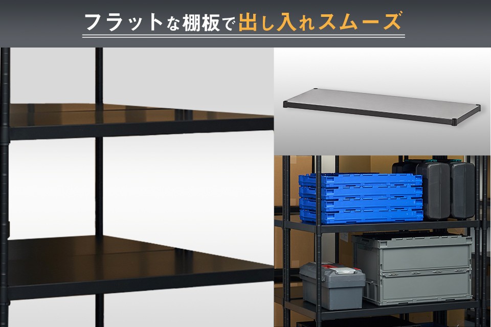 フラットな棚板で出し入れスムーズ!シックなブラックでスッキリ収納