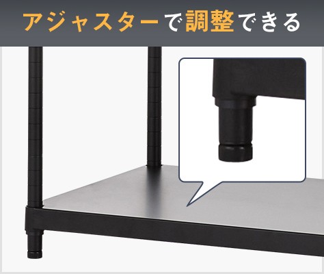| 耐荷重(等分布) | 総耐荷重:500kg(アジャスター使用時)、棚板1枚あたり:120kg |