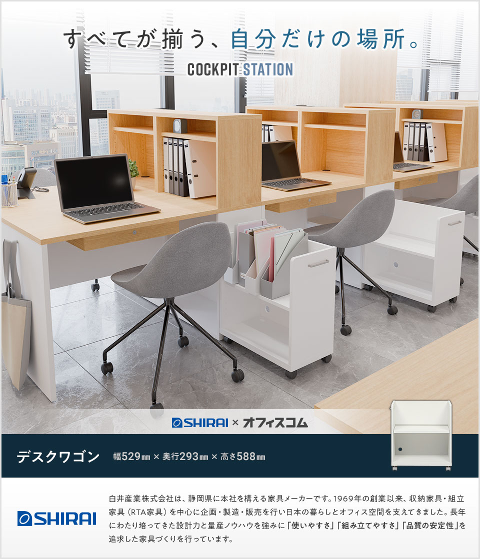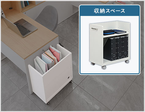 デスク横に設置して、バッグやファイルをスッキリ収納。出し入れしやすいオープン棚が、ワークスペースの快適さを一段と高めます。