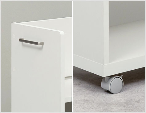 握りやすい取っ手とキャスター付きで、重い荷物を載せたままでも楽に移動。掃除やレイアウト変更もスムーズに行えます。