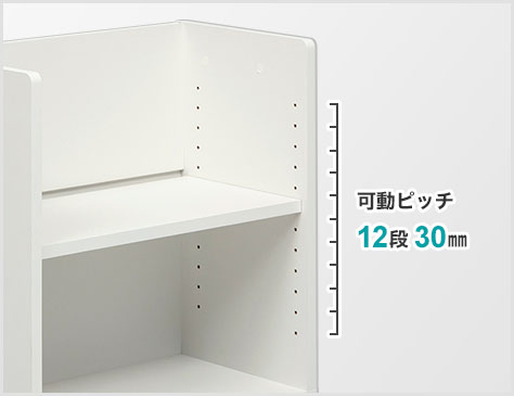 収納物に合わせて棚板の高さを細かく調節可能。ムダな隙間を作らず、資料や小物を効率よく、スッキリと収められます。