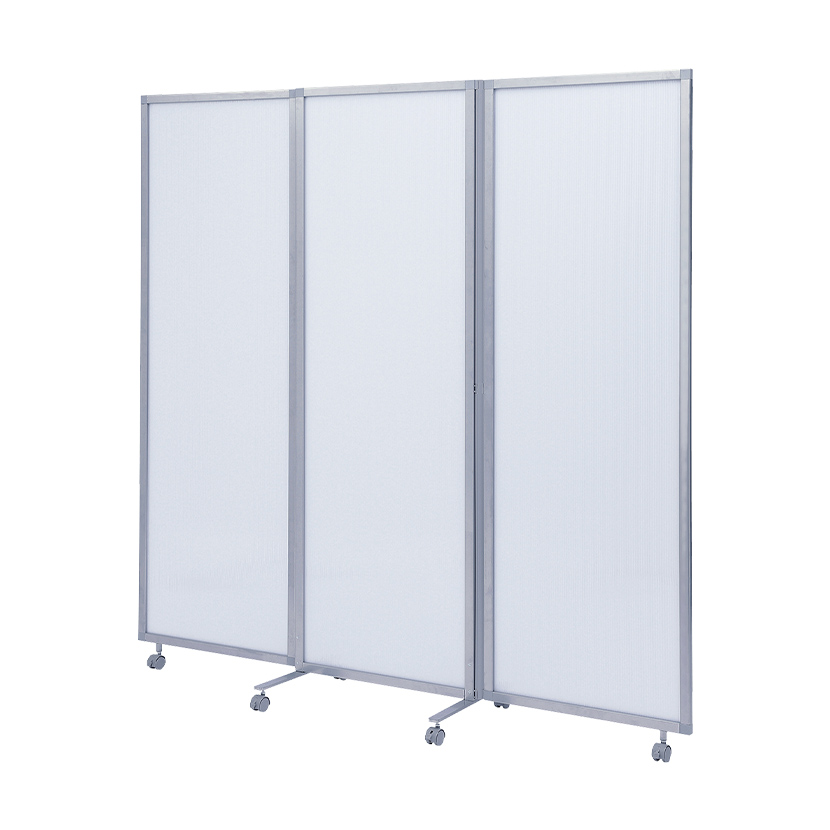 使用しない時は畳んでコンパクトに、広げる時は自由な角度に調整できる3連パーテーションです。